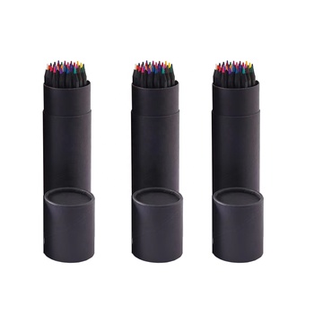 Bút Chì Màu Gỗ In Logo Hình Lục Giác 7 Inch Chiều Dài Đầy Đủ OEM Trong Ống Giấy Gồm 36 Chiếc Bút Chì Màu Gỗ Đen Dành Cho Người Lớn/Trẻ Em